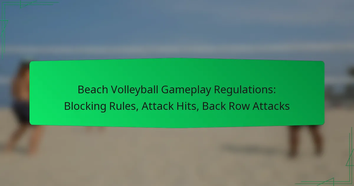 Beach volleyball is governed by specific gameplay regulations that ensure fair competition and strategic play. Key aspects include blocking rules, which dictate how players can intercept attacks, the mechanics of attack hits aimed at scoring points, and the regulations surrounding back row attacks that determine when and how players can engage from the back line. Understanding these rules is crucial for players looking to enhance their performance on the sand.