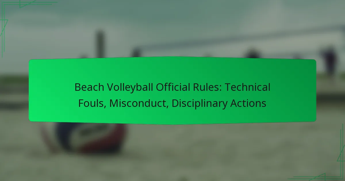 In beach volleyball, technical fouls and misconduct are critical aspects that ensure the integrity and flow of the game. Technical fouls disrupt play and can lead to penalties affecting the score, while misconduct undermines the spirit of the sport and may result in disciplinary actions. These actions range from warnings to suspensions, depending on the severity of the violations, highlighting the importance of adhering to the established rules.